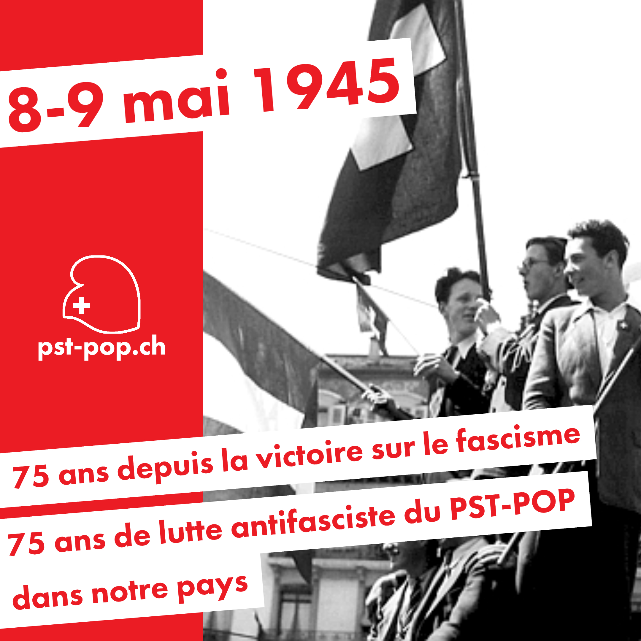 La répression ne se fit pas attendre et, partout en Europe dite « libre », les gens qui voulaient construire un meilleur monde furent traqués, perdirent leur emploi ou furent censurés. En Suisse, les membres du PST-POP n’y échappèrent pas, mais toutes et tous continuèrent de lutter pour une Suisse plus juste et à jamais libérée du nationalisme. 75 ans après la défaite des nazis, cette lutte n’est pas terminée. Le PST-POP aura toujours au cœur de son action la lutte antifasciste.